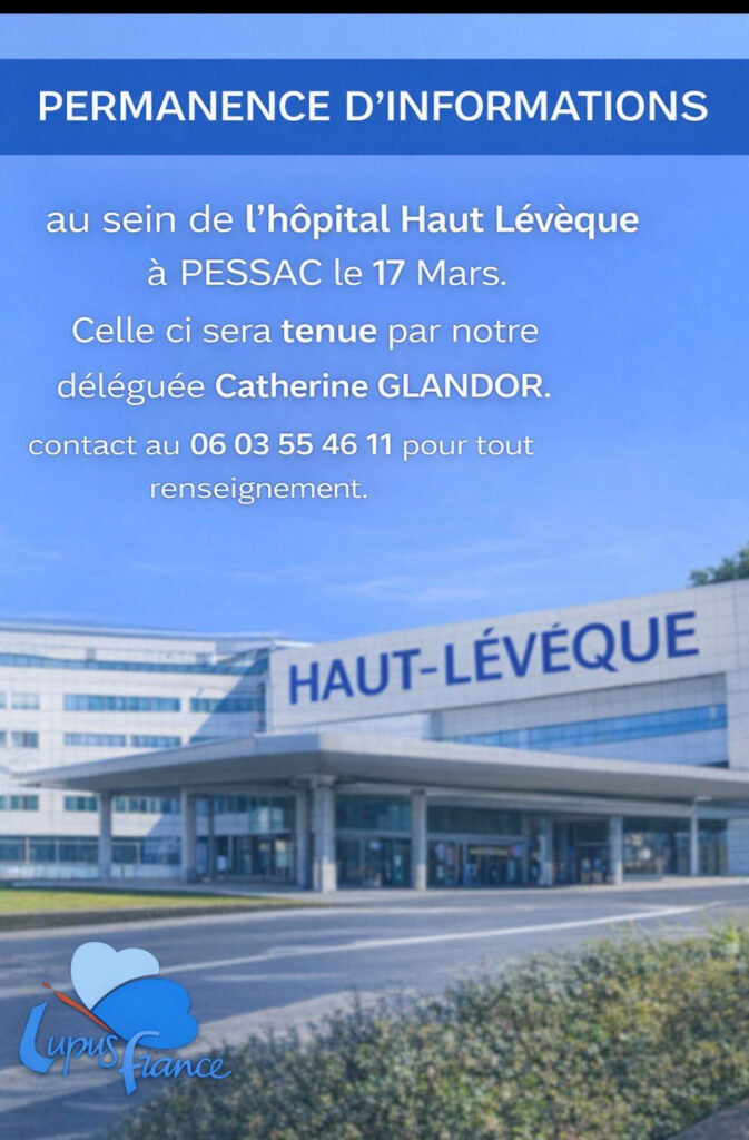 Nous vous informons qu’une permanence d’écoute aura lieu au sein de l’hôpital Haut Lévèque à PESSAC le 17 Mars.